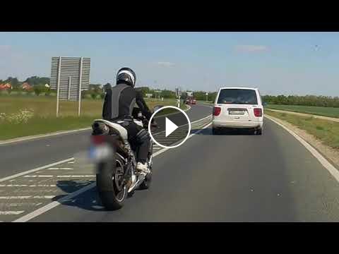 Olvasónk rögzítette a 87-es főúton a könnyelmű motorost.